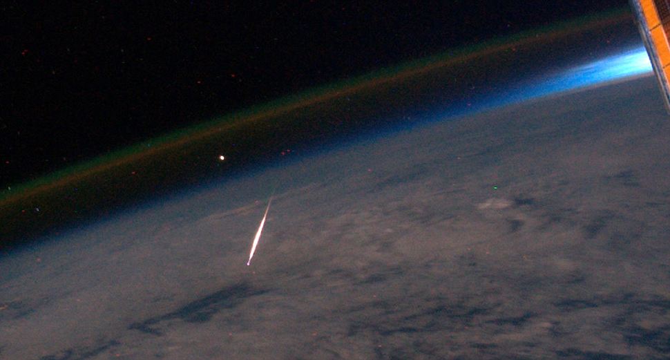 As vezes nós fotógrafos ou astrônomos, temos a sorte, de estarmos na hora certa e no lugar certo em que um grande evento acontece e para a alegria de muitos, capturarmos o momento “mágico”. Foi exatamente o caso do astronauta da NASA, Ron Garan, que conseguiu capturar com sua câmera o momento “mágico”. Ele tirou esta fotografia, deslumbrante, de um meteoro queimando na entrada da atmosfera terrestre, através de uma janela da Estação Espacial Internacional (ISS) no domingo(15), durante a chuva anual de meteoros Perseidas. A principal diferença nesta imagem, que não é imediatamente óbvia, ao se olhar para ela, é que os meteoros da Perseidas, estão se afastando de Garan, ao invés virem para ele, como seria o caso se a imagem foi capturada por nós da Terra.
