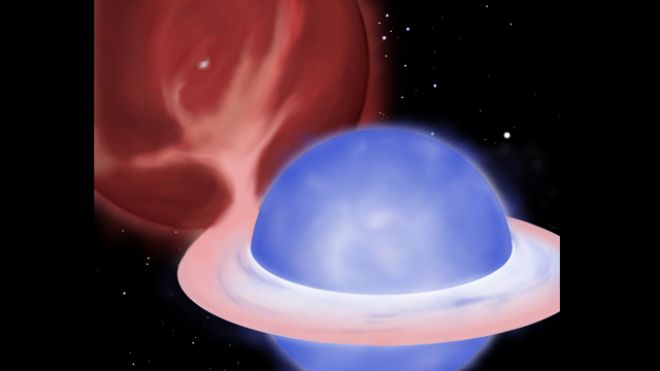 A concepção artística acima mostra um assim chamado “Vampiro Estelar” ou “Retardatária Azul” roubando a massa de sua parceira em um sistema estelar binário. Observem que a estrela gigante do lado superior esquerdo vai doar o restante de seu conteúdo, para o vampiro azul, deixando apenas uma porção de massa solar numa anã branca.