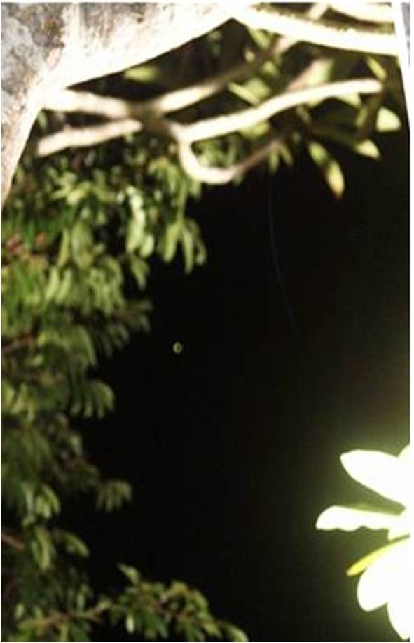 Foto para análise. Segundo Wanderson a foto foi tirada em uma ocasião muito especial para ele e um dia antes ele teria ouvido uma historia contada por uma pessoa, que disse ter ouvido barulhos durante a noite, e que quando saiu do lado de fora da sua casa, avistou fortes luzes, passando por cima de sua casa em direção a uma lagoa e mata de sua propriedade.